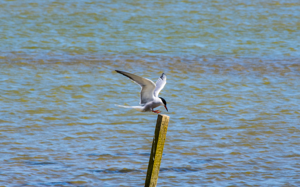 There is a lot of movement in this photograph. The waer is moving, catching the sunlight, the bird is obviously in flight, his feet have not yet touched the post, infact the only thing that is stationary is the post which sits at an angle in the centre of the frame. I also feel that even the post adds to the movement as there is a line from the tip of the bird's wind down along the post to the water which draws the viewer's eye.